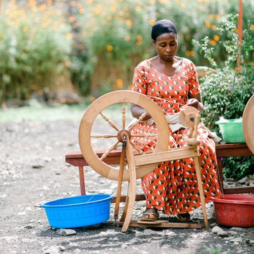 The wool from their flock of Merino sheep is triple-washed before the ladies of Handspun Hope begin creating yarn using the age-old craft of spinning with only wheels and hand tools. It is then dyed in baths created from native Rwandan plants, giving our palette like none other in the world. The project gives over 120 women, most of them widows and orphaned survivors of the 1994 Genocide against the Tutsi, dignified employment.
