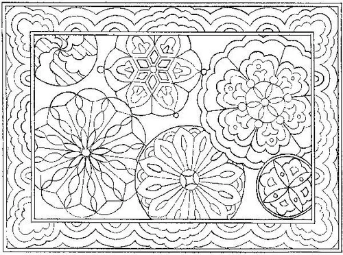 Kaleidoscope rug hooking pattern on Linen 31″ x 43″ by Melissa Elliot.