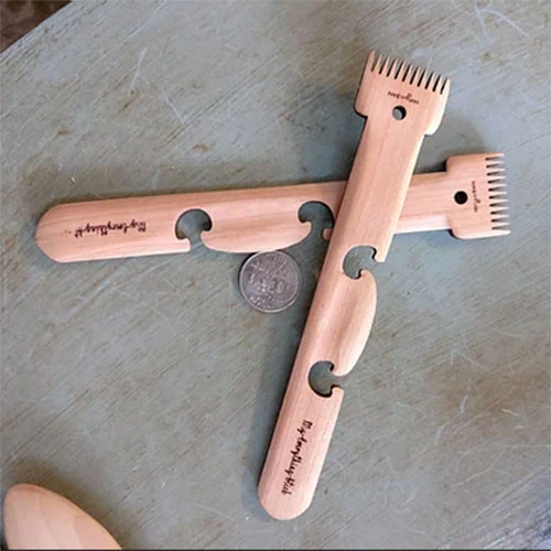 The only weaving tool you will need for inkle loom weaving. This 4-in-1 tool is laser cut from hard maple and sanded to a silky smooth finish. Available in three lengths.