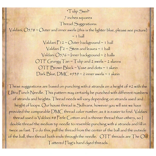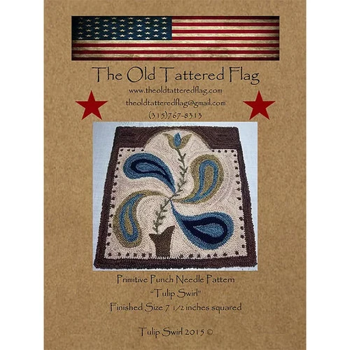 An original pattern from Julie Thomas at The Old Tattered Flag. An antique adaptation, this Tulip is inspired from an 1800’s folkart painted chest front. The finished size of this pattern is 7.5″ x 7.5″.